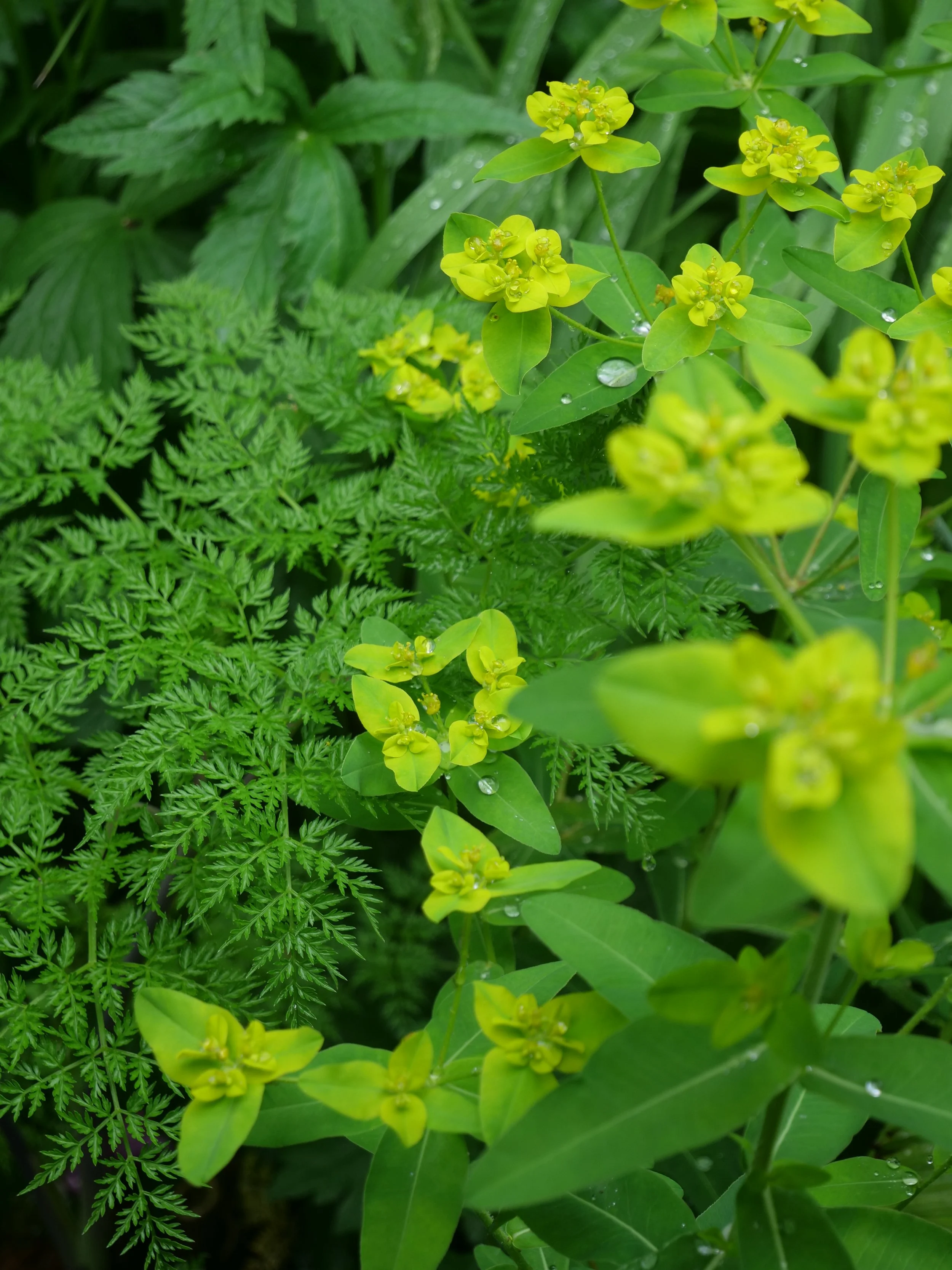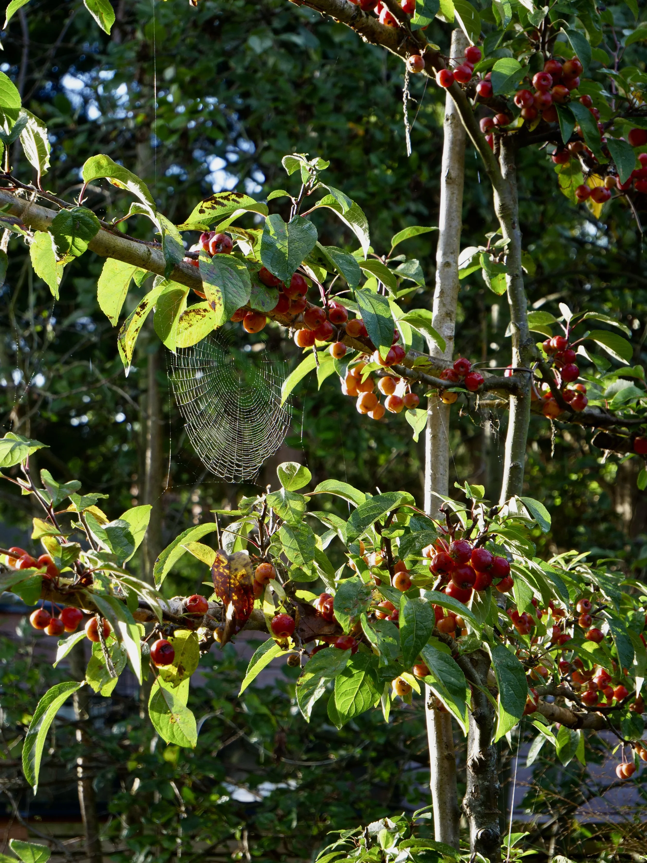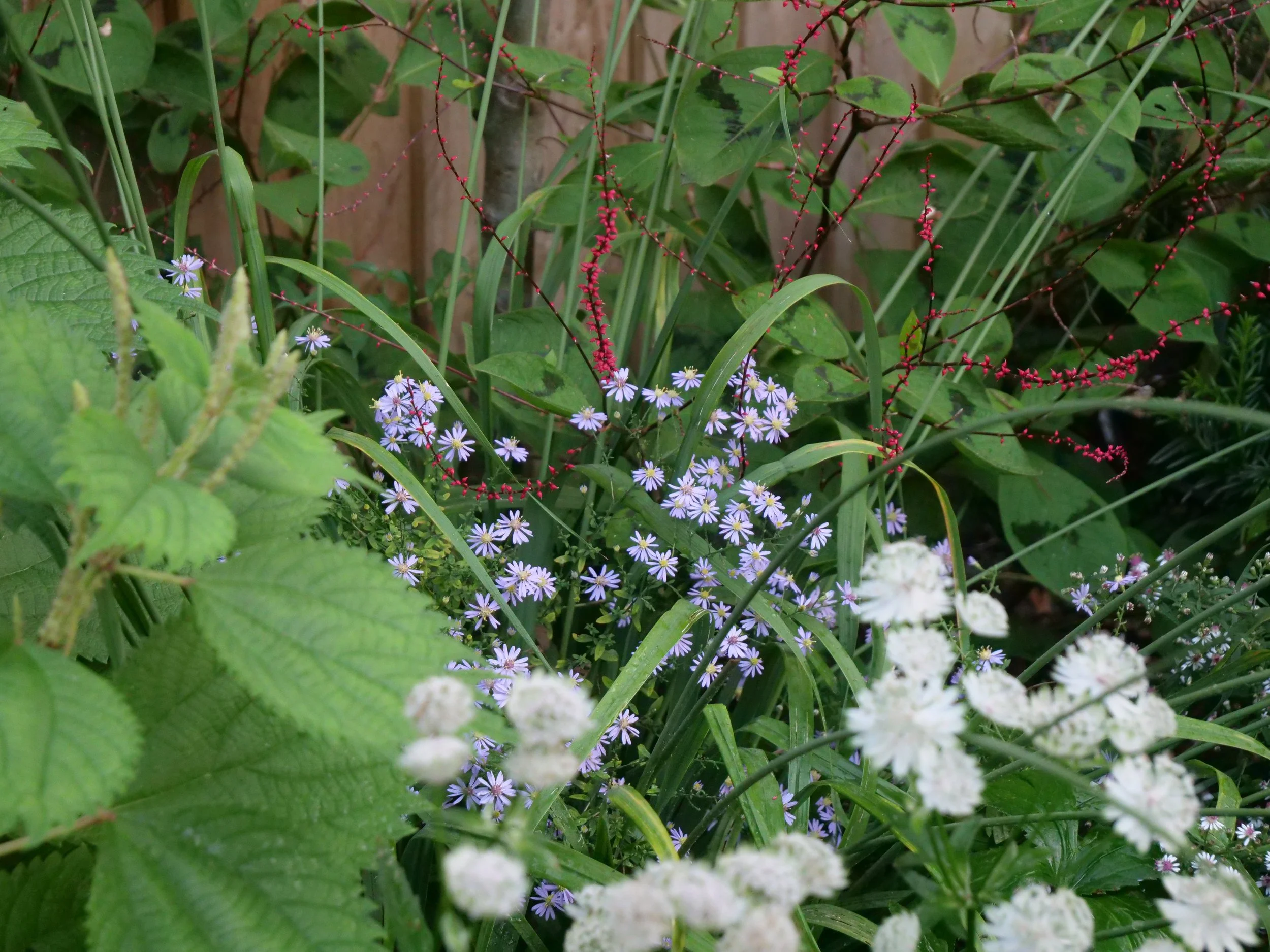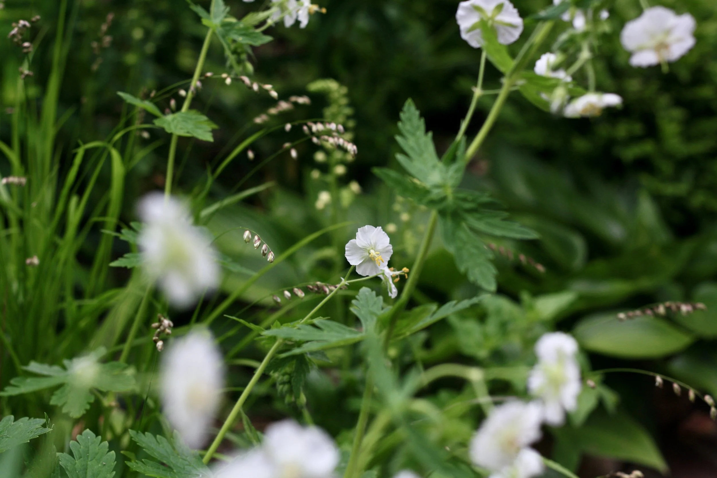 Bold architectural elements including yew topiary and pleached crab apples form a permanent structural framework through which softer and wilder herbaceous planting ebbs and flows.